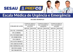 insert_link CAMPO GRANDEConfira a escala médica de plantão nas UPAs e CRSs neste domingo (10/03/2024) today10/03/2024 51
